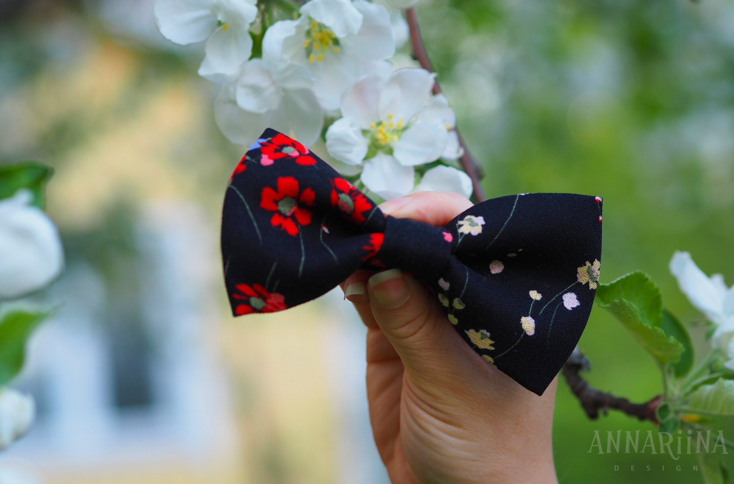 Huomioithan, että jokainen rusetti on yksilöllinen. Kukkakuvio vaihtelee kankaan leikkauskohdan mukaan, joten rusetti saattaa poiketa hieman kuvasta.
